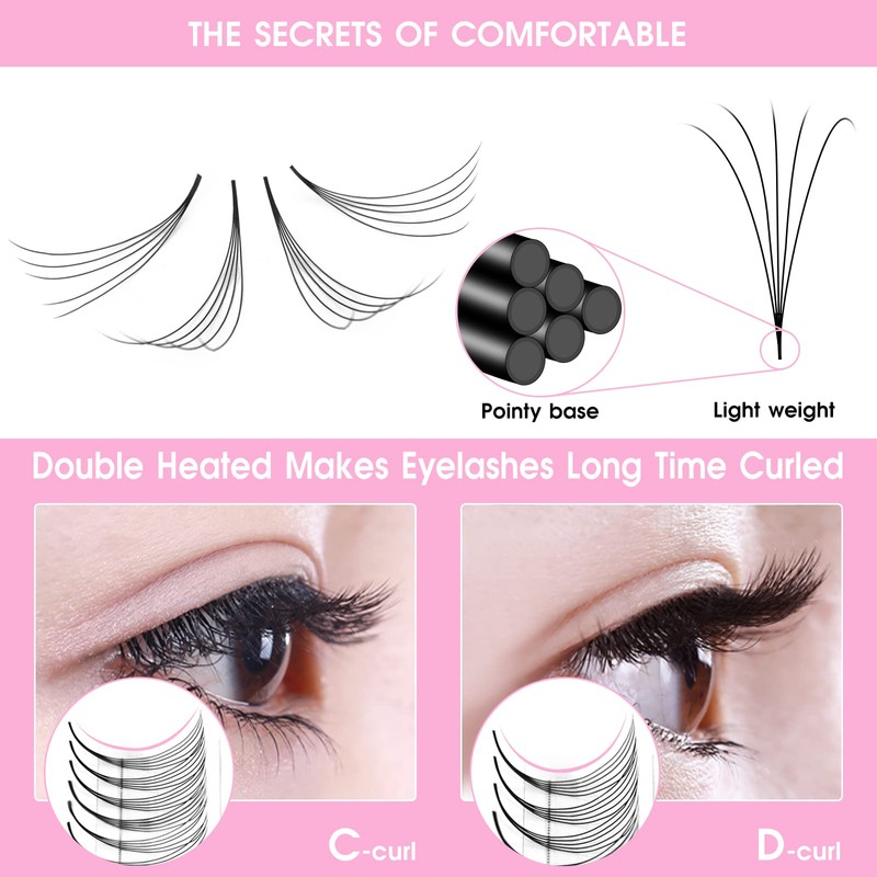 - SPECIFICATION : Pointy Base Premade Fans Eyelash Extension have regular trays that per regular tray has 120 fans. Available in 3-10D , 0.07/0.10 , C and D curl , 8 to 15 mm single length and 8-15 m