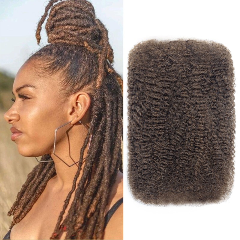 Pre-sretched Afro Kinkys Bulk Human Hair for Permanent Micro Locs/Twists/Braids/Repair Locs Afro Kinky Curly Bulk Length and Thickness Extending(#4,10inch 50g)