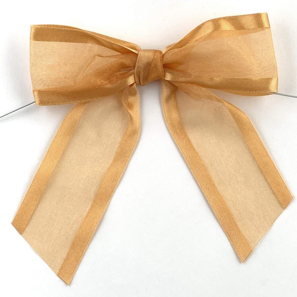 Pre-Tied Gold Organza Bows - 4 1/2" Wide, Set of 12, Craft Ribbon Bow, Satin Edge, Wedding Embellishments, Anniversary, Gift Basket, Birthday, Fall, Christmas, NYE, Mardi Gras