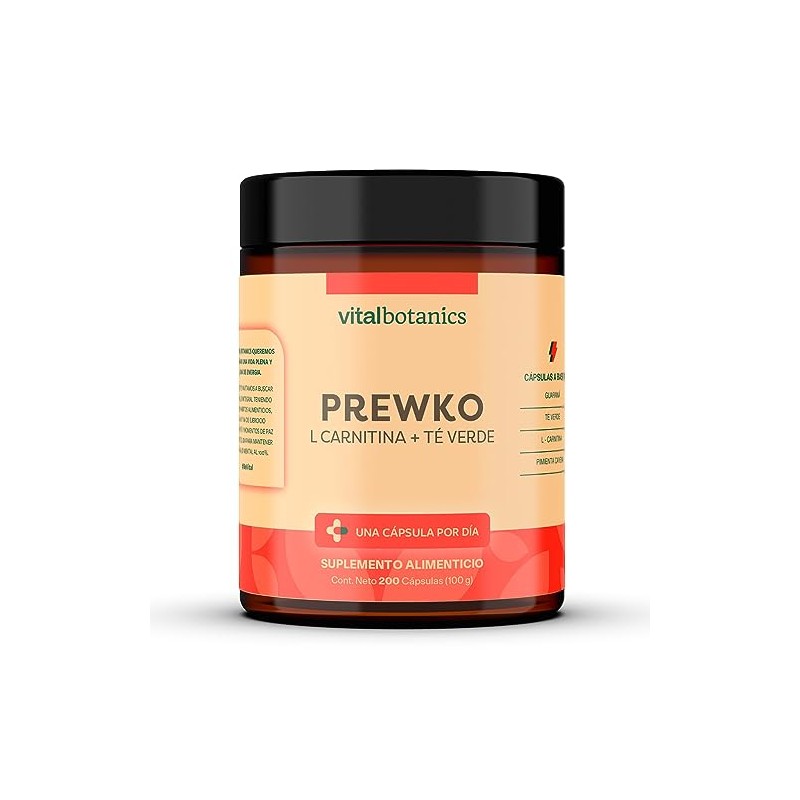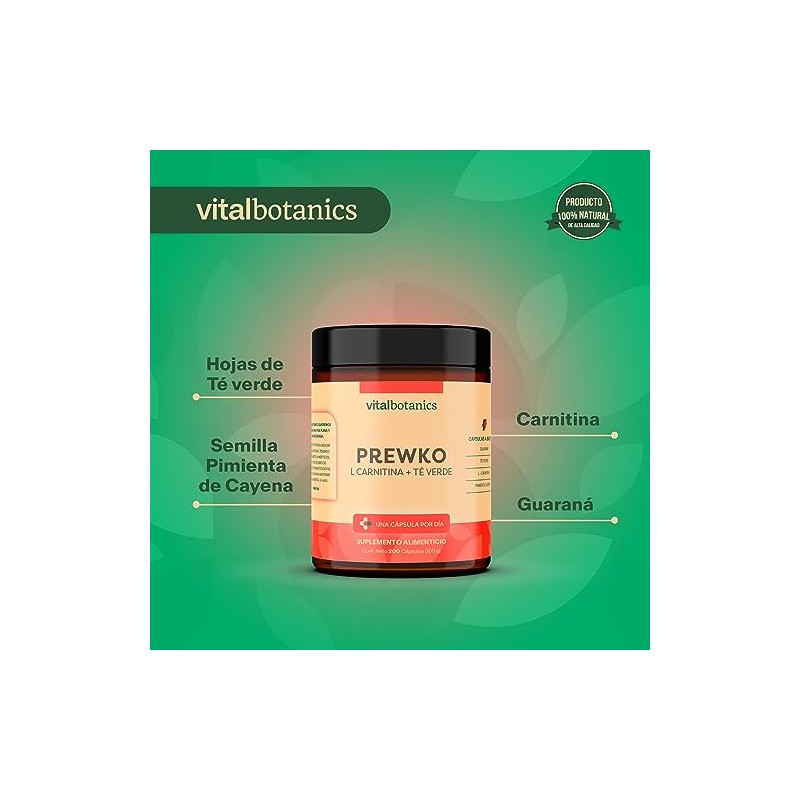Pre Workout con L Carnitina Guarana Te verde Cayena. 200 capsulas [6 meses]. VitalBotanics. Suplemento Multivitamnico para Deportistas