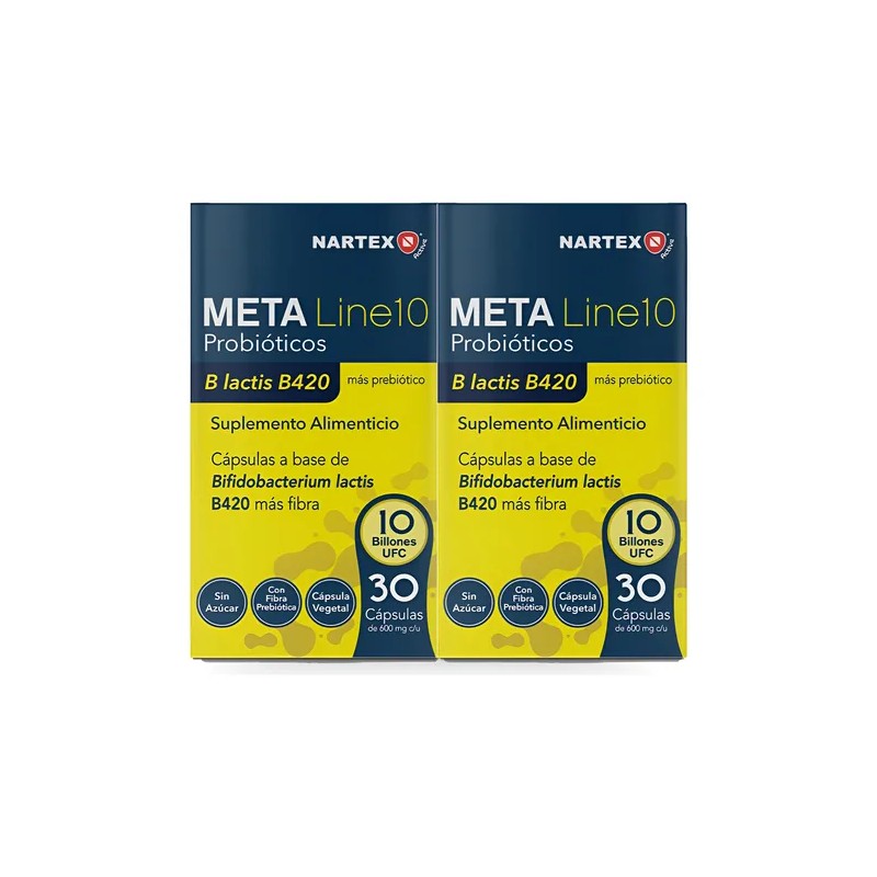 Contenido: 2 Frascos de META Line con 30 Capsulas cada uno, teniendo un suministro de 60 Cápsulas en total.