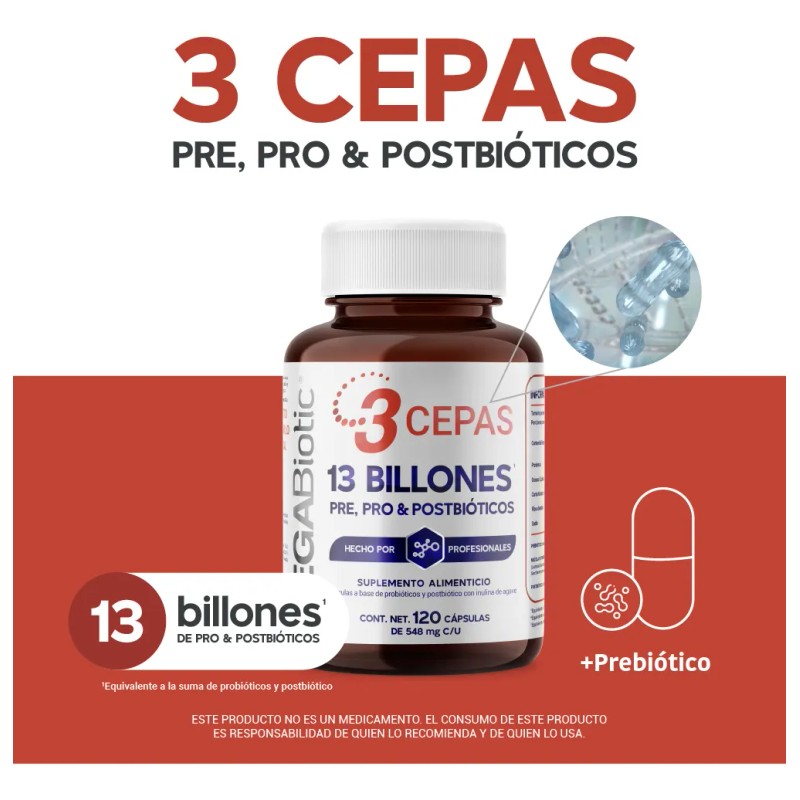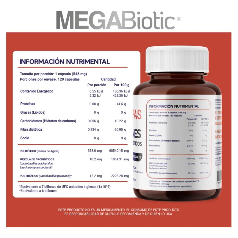🦠💊 Megabiotic | 120 Cápsulas | Prebióticos, Probióticos y Postbióticos | Salud Digestiva, Inmunidad y Bienestar Intestinal | Sin Sabor | México 🇲🇽