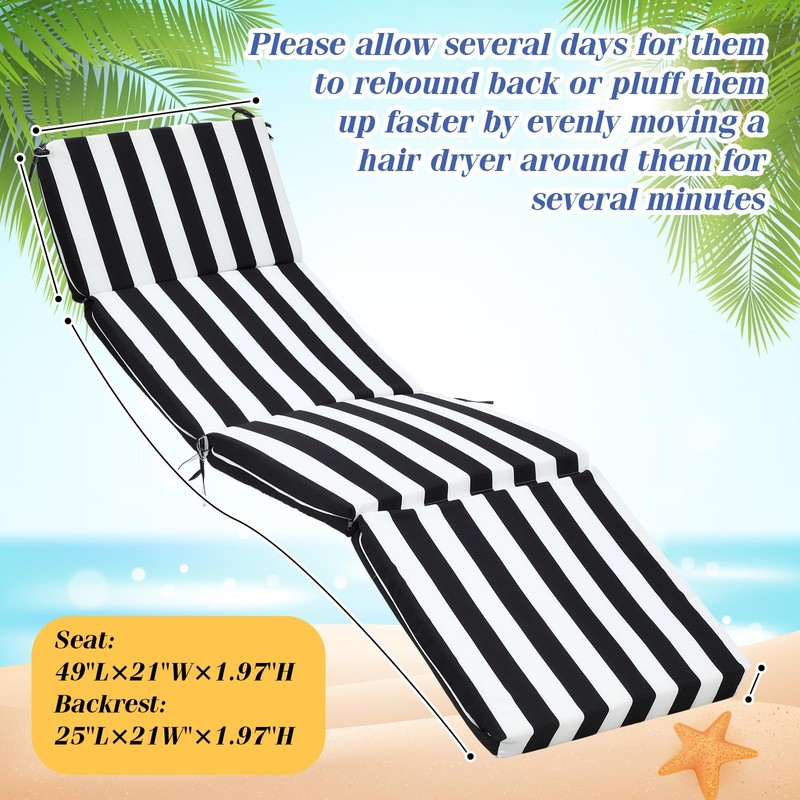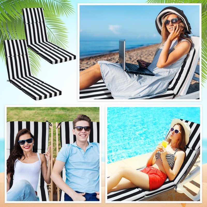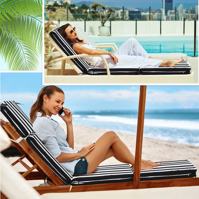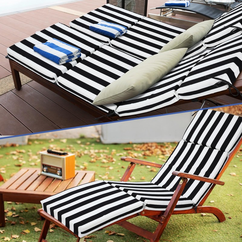 - Stylish Design: enhance the aesthetic appeal of your outdoor furniture with our black and white stripe chaise lounge chair cushions; The unique pattern adds a touch of elegance and sophistication to any outdoor setting, making it a good addition to your patio, poolside, or garden