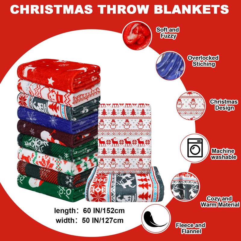 - Throw Blankets Bulk: you'll receive 9 charming designs throw blankets, including reindeer, snowman, snowflake, Santa Claus, and plaid patterns, these winter throw blankets are suitable for sharing with family and friends, wrapping in warmth and feel the softness during the chilly Christmas nights and also ideal as a Christmas gift