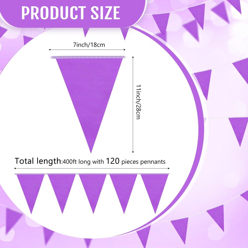 Preboun Pancartas de Banderines Sólidos de 400 Pies Guirnalda de Banderines Triangulares 240 Banderillas Triangulares Colgantes para Gran Inauguración Carnaval Cumpleaños Fiesta (Púrpura)
