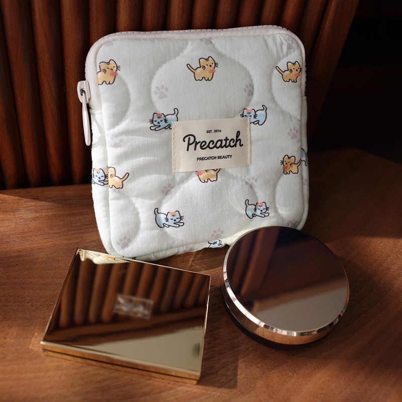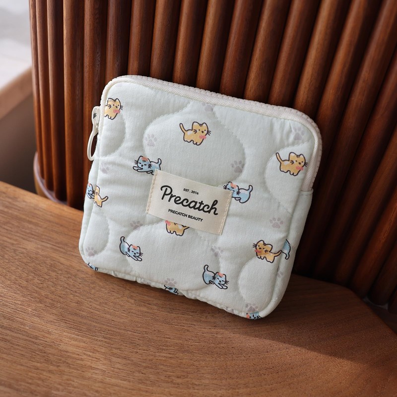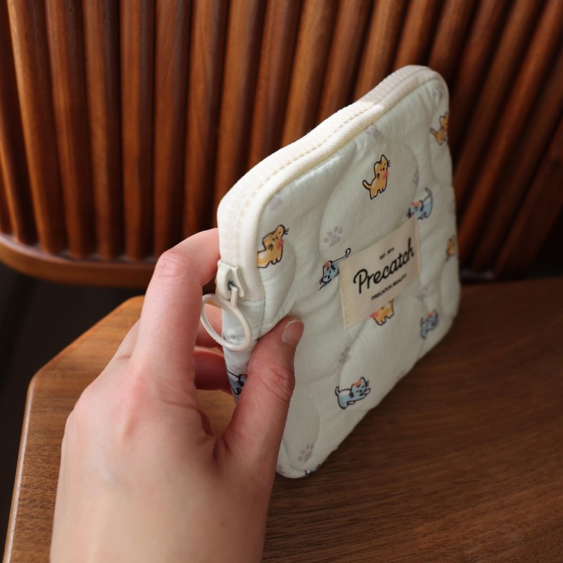 Precatch Women's Pouch, Accessory Storage, Canvas, Coin Purse, Compact, Character, white