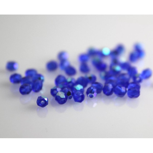 PRECIOSA Dark Sapphire Blue AB - 50 3mm Faceted Round Fire Polish Czech Glass Beads
