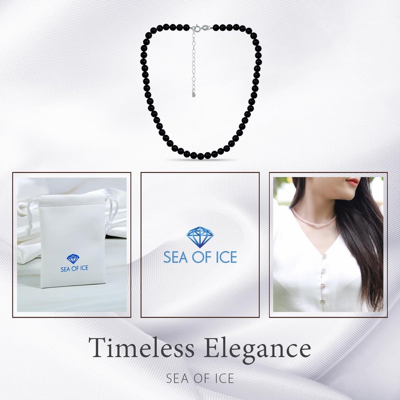 Precious Gemstone 6mm Round Beads Necklace 14" Plus 2" Extender with Sterling Silver Spring Ring Clasp (onyx)