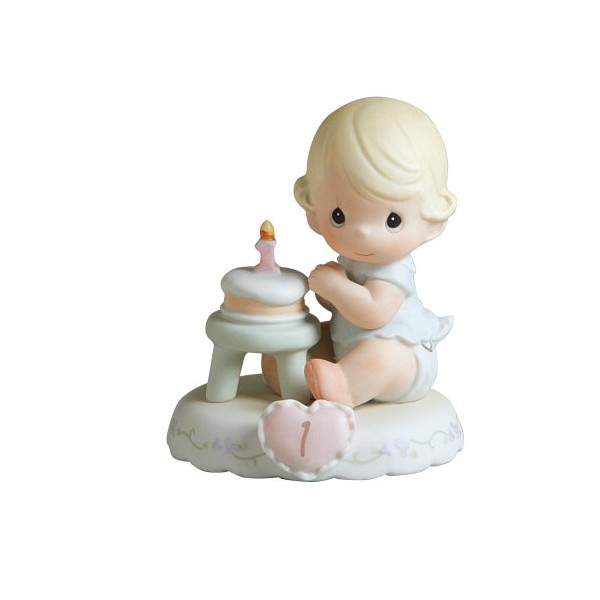 This addition to the Growing In Grace figurine series depicts a little girl celebrating her first birthday. She has a cake with one candle on it. Stands 3.0 inches tall. Age One.