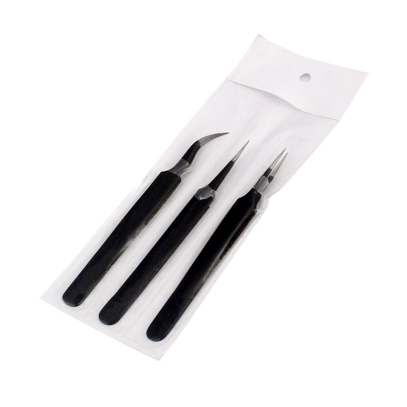 - 3pcs of Fine tip Curved + Straight and Round Anti-Static Tweezers Set