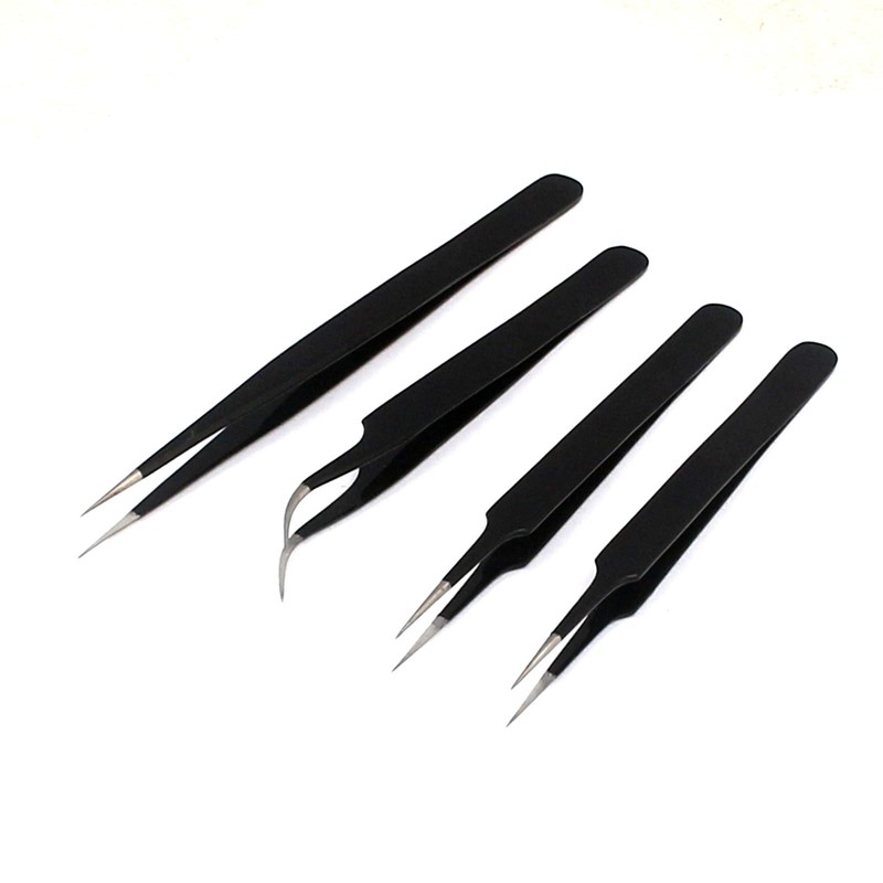 - 4 Pcs ESD Tweezers Set Anti-Static Tweezers Stainless Steel Tweezers for Eyelash Extension,Electronics, Jewelry-Making - Straight and Curved Tip Tweezers - Black