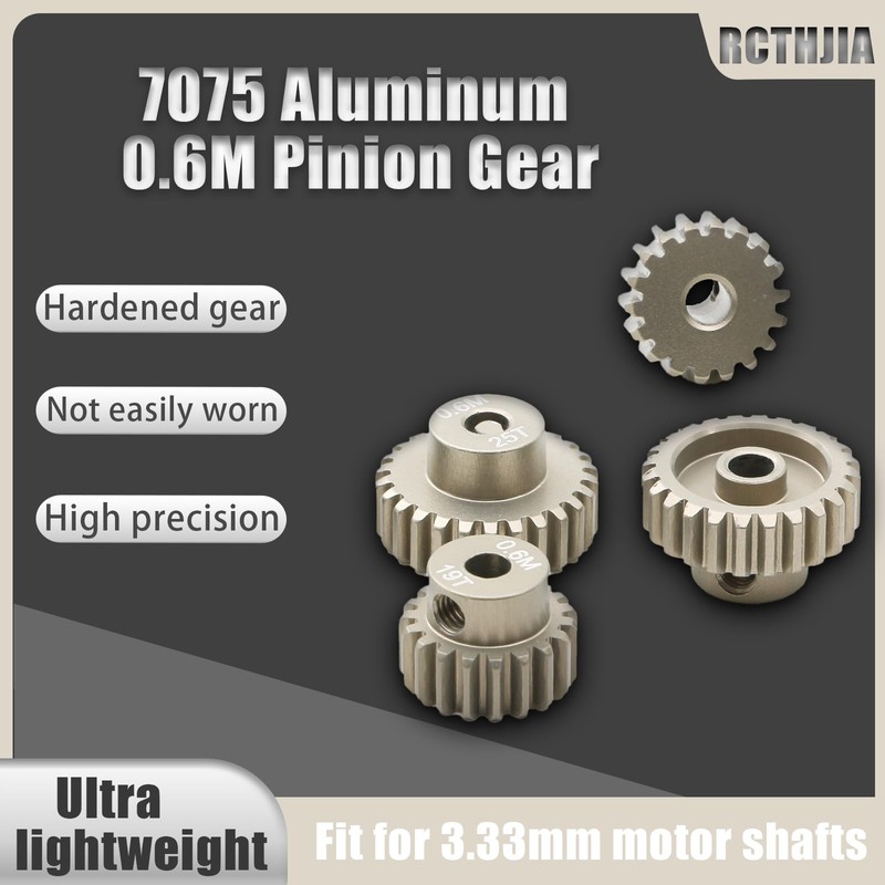 Precision 7075 Aluminum 0.6M Pinion Gear Set (18T/19T/24T/25T) for 1/10 RC Models - 0.6 Module Hardened Gears Compatible with 257mm/260mm Chassis for Tamiya TT01/TT02/TB02/TA05