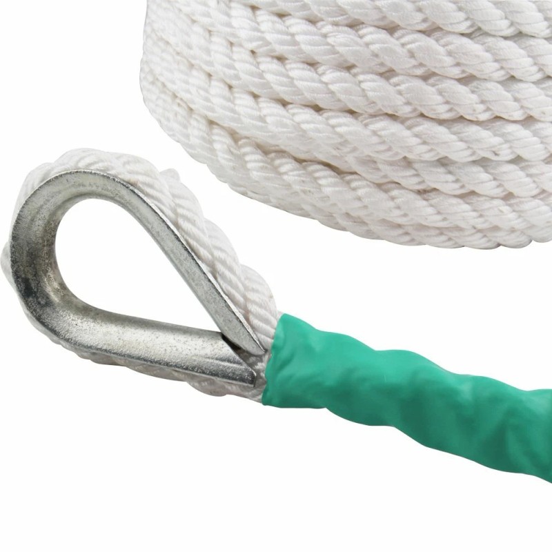 1/2″ X 200′ ANCHOR LINE WHITE THREE BRAID NYLON ROPE BOAT SAILBOAT WITH THIMBLE