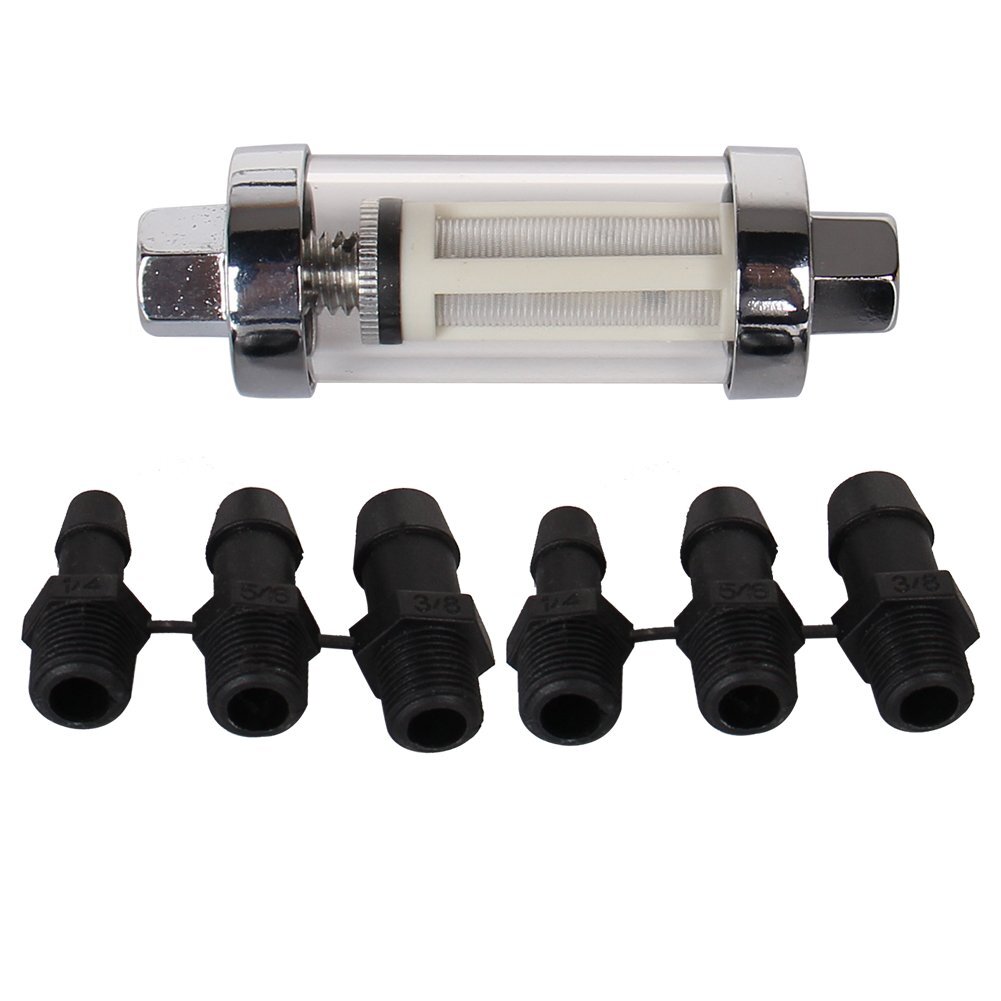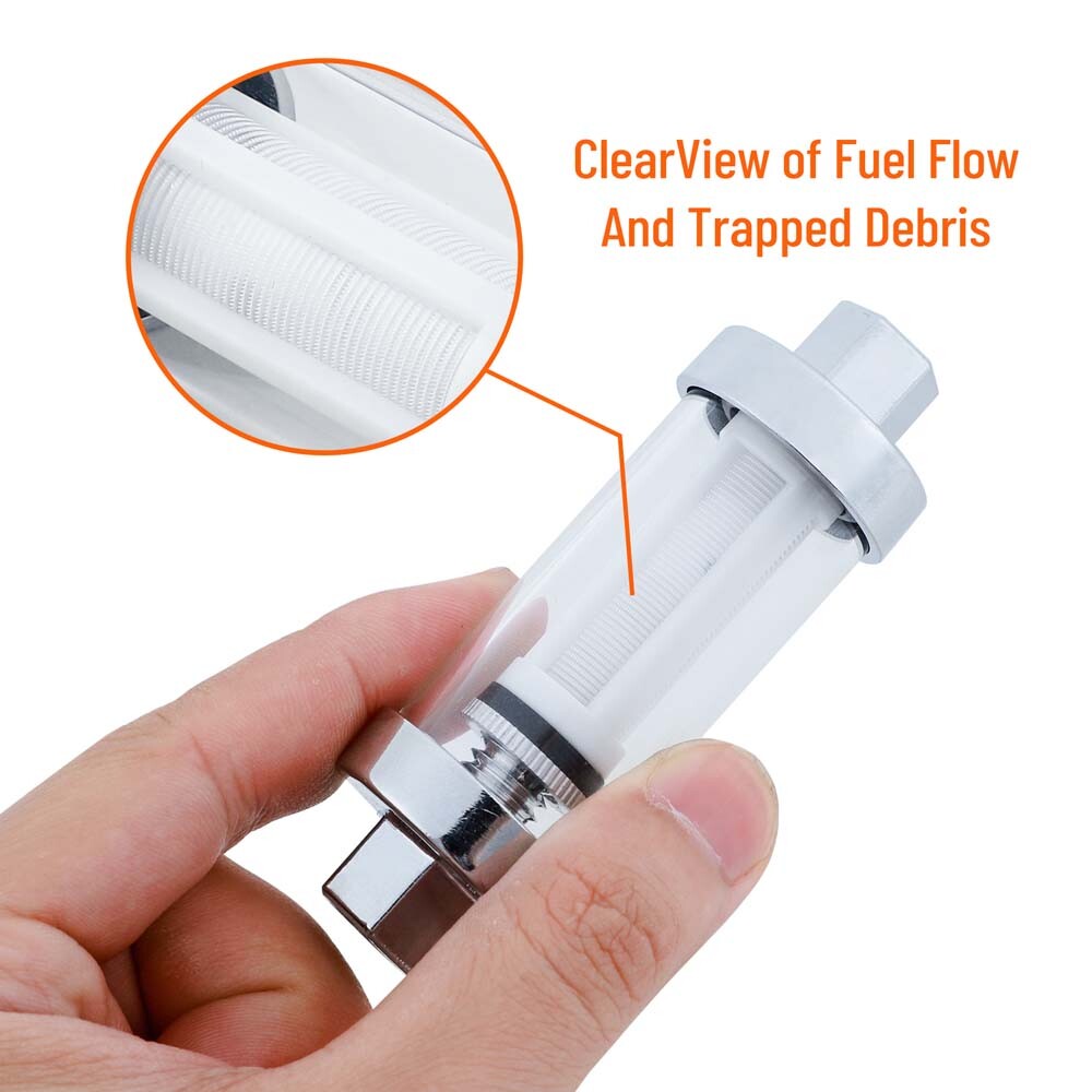 Precision Auto Labs 2PCS Universal 1/4" 5/16" 3/8" Fuel Filter Clear View Inline Gas Glass Washable