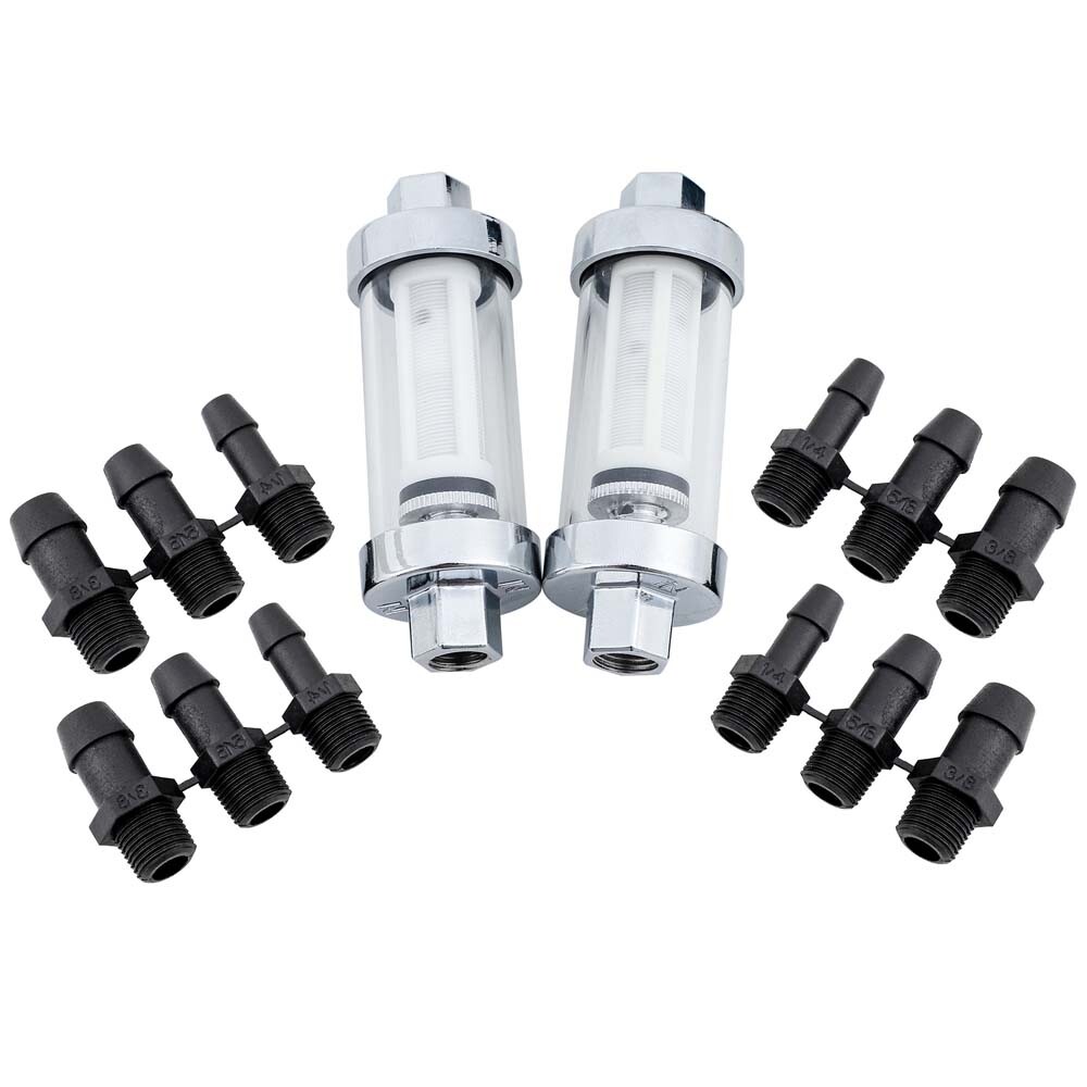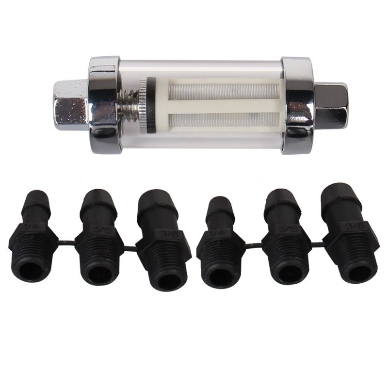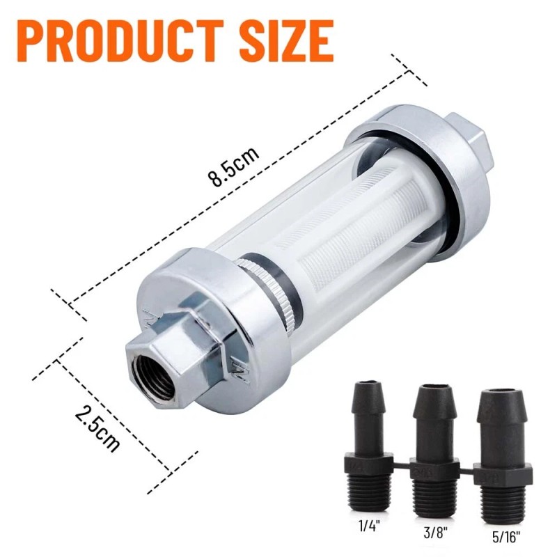 The stylish chrome and glass design multi-fit fuel filter suitable for all vehicles including cars, boats, motorcycles, tractors, classics, kit cars and many other applications.
