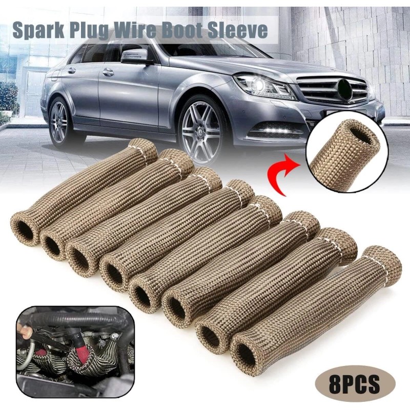 Product Description: 100% brand new Color: Titanium Length: 6" (15.5cm) ID: 1" (22mm) Quantity:Set of 8 Spark Plug Sleeve Universal fit most straight or angled boots Protect spark plug boots and wires from extreme temperatures generated by vehicle exhaust headers and manifolds Keep your wire and boot cooler in a high temperature environment Helps prevent burn-through, hardening and cracking of boots that could lead to engine misfire and damage Rated for 1800°F continuous use, 2500°F intermittent Double layer construction for added durability Eeay to install