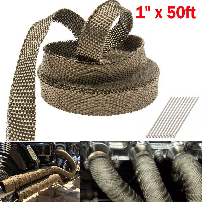 Titanium Manifold Exhaust Wrap Header Pipe Heat Insulation Tape Roll 1" x 50 FT