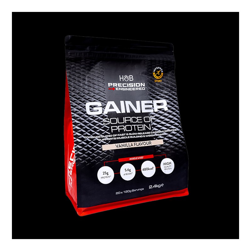 Looking for a convenient way to gain bulk, build muscle and reach your weight goals? Precision Engineered Gainer offers just that. Crafted with simplicity in mind, this vanilla-flavoured weight gainer is packed with 25g of protein, energising fast-release carbohydrates, slow-releasing complex carbohydrates and BCAAs.