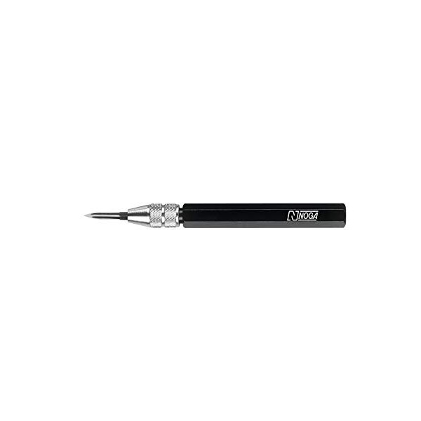 Light metal holder (120 mm long) with collet and replaceable, reversible triangular hollow profile blade made of special tool steel or carbide.