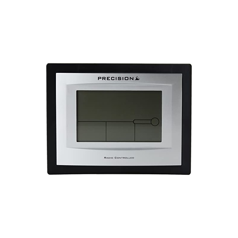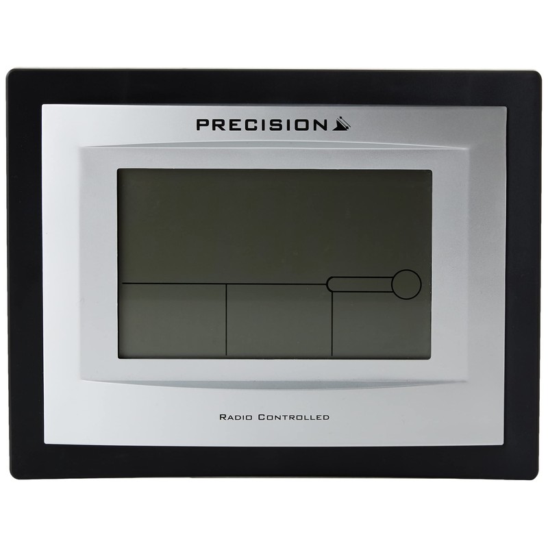 Precision Silver LCD Radio Controlled Alarm Clock, Black