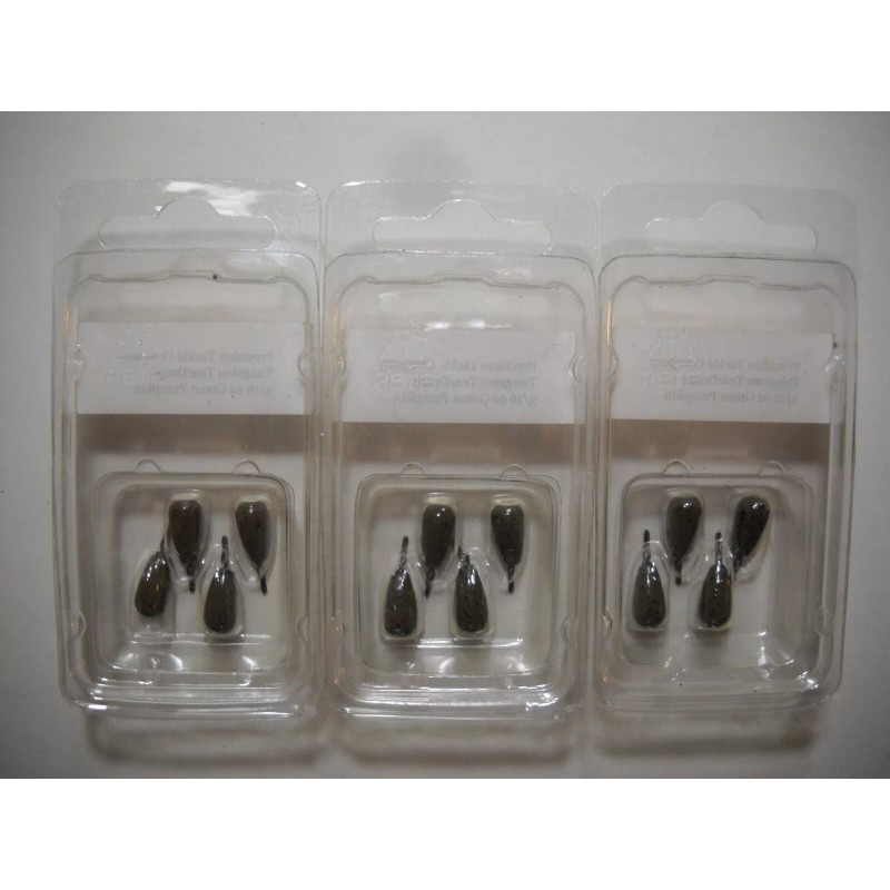 Precision Tungsten & Tackle Company Lot of 3 PRECISION TUNGSTEN 3/16oz TEARDROP DROPSHOT Weights - GREEN PUMPKIN