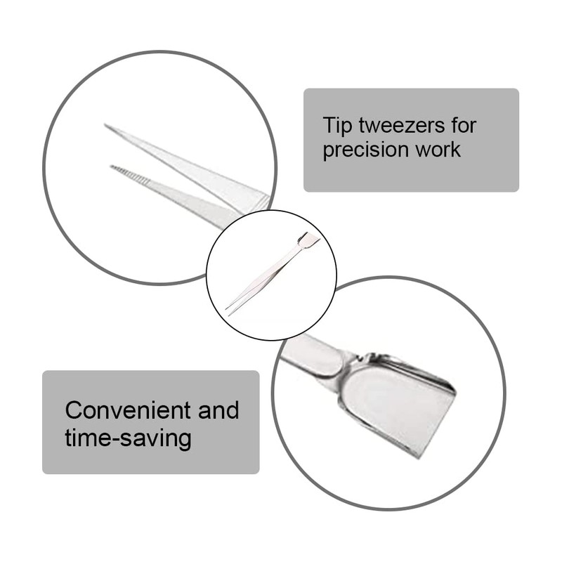 - 【Package and Function】Contains a gray tweezer. In addition to the general tweezers function, it also has the function of a shovel, which can pick up the scattered powder.