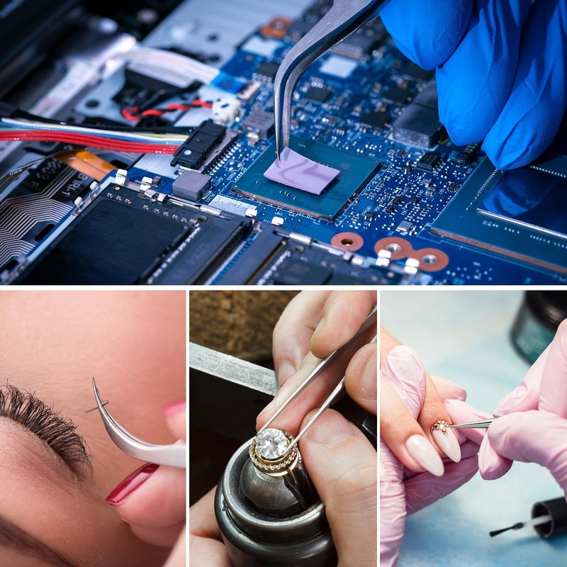 The precision tweezers are suitable for professional and home use, such as plastic models, precision instruments, electronics, industrial, design work, seal pasting, and extension.