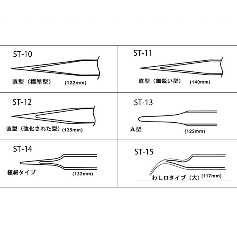 Tweezers [ST-15]: Pre-curved type, can be used for work in narrow spaces (124mm/4.88in)