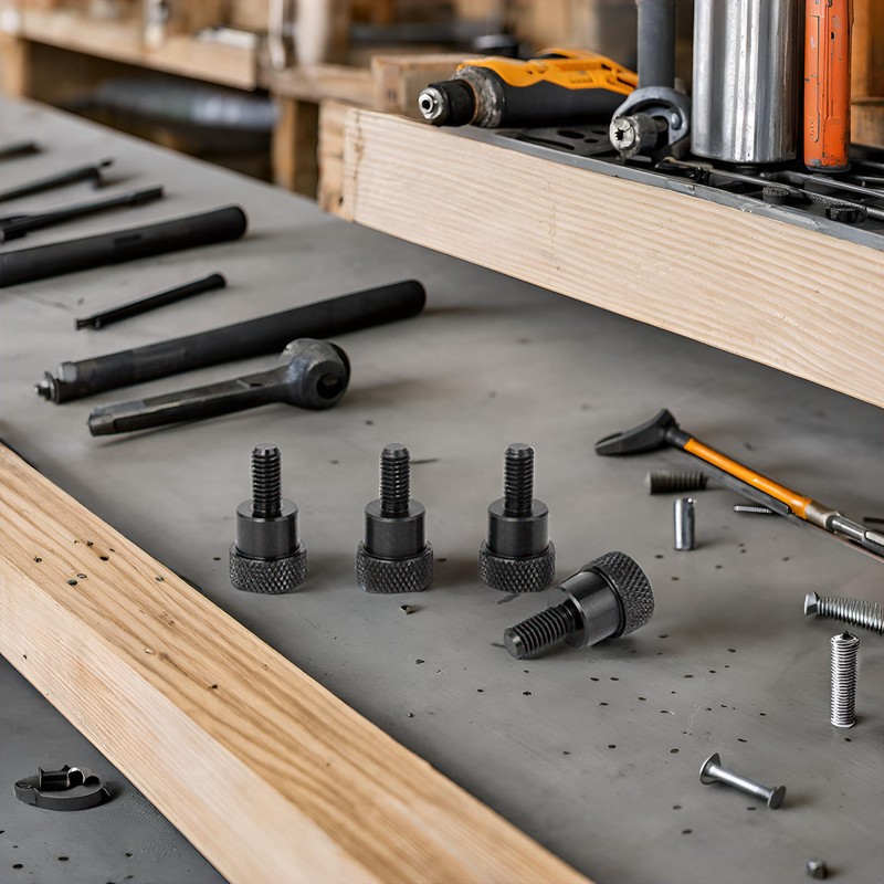 Knurled head provides extra finger grip for manual tightening. Thumb screws are designed to be tightened and loosened by hand. Tools are not required for tightening or loosening.