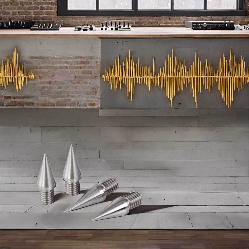 Speaker spikes, insulation pads are solid metal elements with a machine fine finish. Central register hole ensures spikes are properly engaged to avoid damage to wood, laminate floors. Excellent for speaker cabinets to ensure even grounding, mass stability for excellent bass performance. Can be used in conjunction with adjustable spikes to stabilize, insulate turntables. For delicate surfaces, please use self-adhesive felt pads. SATISFACTION GUARANTEE - If you are not satisfied with your purchase, please contact us and we will do our absolute best to make things right.