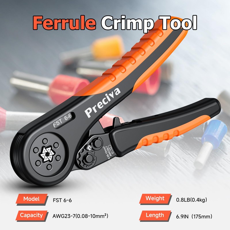 - [AWG 28-7& 0.08-10mm²] This new Preciva hexagonal ferrule crimping tool could be suitable for AWG 28-7 Wires, and the crimping range of the crimper tool is 0.08-10mm². It can be used for insulated and non-insulated wire ferrules connectors.