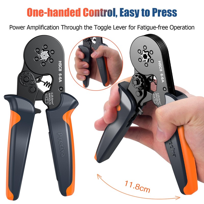 - 【Smart Design】Low grip, Lightweight; power amplification through the elbow,Ideal for crimping insulated and non-insulated wire ferrules.Preciva professional wire crimping tool could help you quickly complete the wiring, suitable for all kinds of equipment switches, batteries, cars and household, electronic components with pins etc
