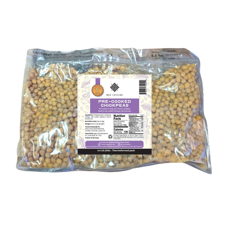 - CREATE FRESH HUMMUS IN RECORD TIME: You can now create your favourite mediterranean dip in just a few minute : in a food processor add 2kg of Med Cuisine Pre-cooked Chickpeas, 454g of Tahini and 300ml of still water. Voila, enjoy it!