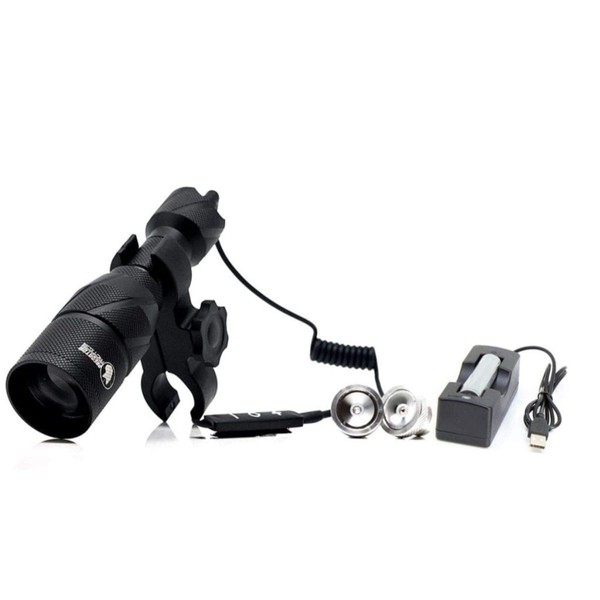 The Predator Tactics Eradicator Light Kit is a great choice for the budget minded hunter that is in need of a great predator hunting light or hog hunting light at a wallet friendly price without sacrificing quality and performance. The Eradicator comes equipped with intensity control, adjustable focus, silent remote switch, interchangeable LED, and up to 300 yards of beam throw. It will quickly attach to your scope with the included scope mount and have you out in the field chasing predators and hogs in no time.