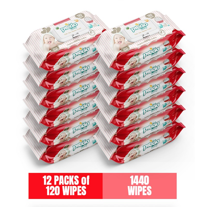Predo Baby Wipes, 12 Packs, 1440 Wipes, Aloe, Vitamin E and Vitamin B5