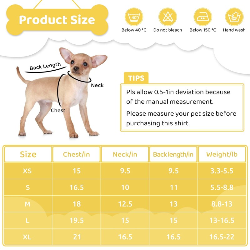 - 【Suitable Size】These dog t-shirts are available in 5 sizes, from XS to XL, suitable for small medium large dogs. If you have doubts about our size, please refer to our size chart to choose the right clothing for your pet.