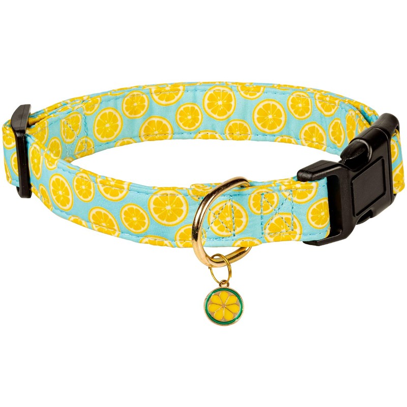 - 【Blue Lemon Dog Collar】- Incorporating Lemon elements, yellow lemon charm - Cool summer day ! Soft fabric, personalized design of bright colors, cute pattern elements exquisite pendant, make your girl boy dogs more cute charm comfortable.