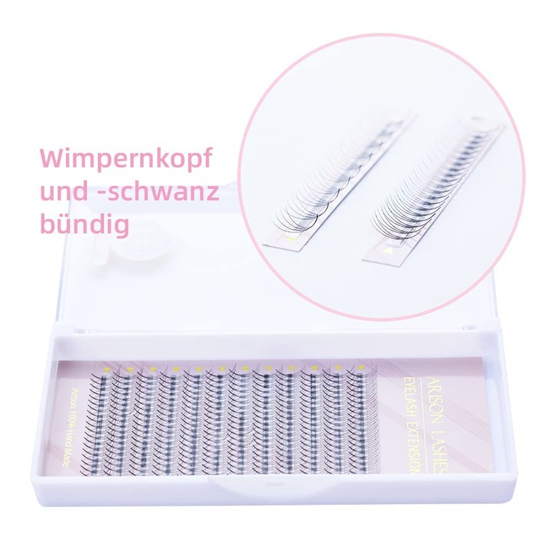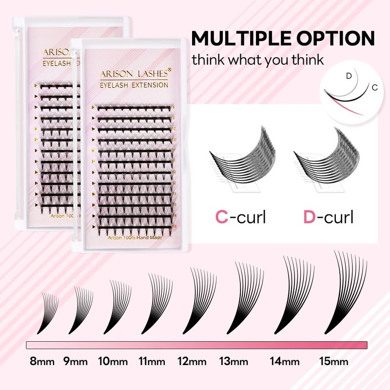 - High quality: ARISON LASHES premade fans are 100% hand-made by our ARISON LASHES skilled artisans. Using black Korean PBT Silk, this friendly material gives you and your beautiful clients soulful eyes with stable curl lashes, a soft, lightweight, and luxurious feel, and a glamorous look without damaging the natural lashes.