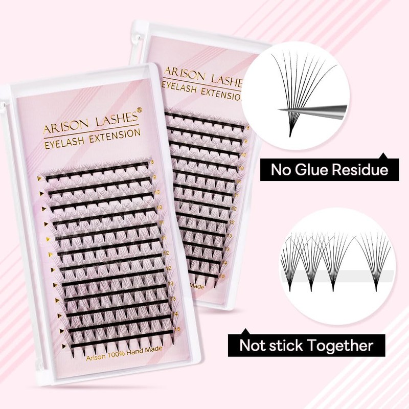 • High quality: ARISON LASHES premade fans are 100% hand-made by our ARISON LASHES skilled artisans. Using black Korean PBT Silk, this friendly material gives you and your beautiful clients soulful eyes with stable curl lashes, a soft, lightweight, and luxurious feel, and a glamorous look without damaging the natural lashes.