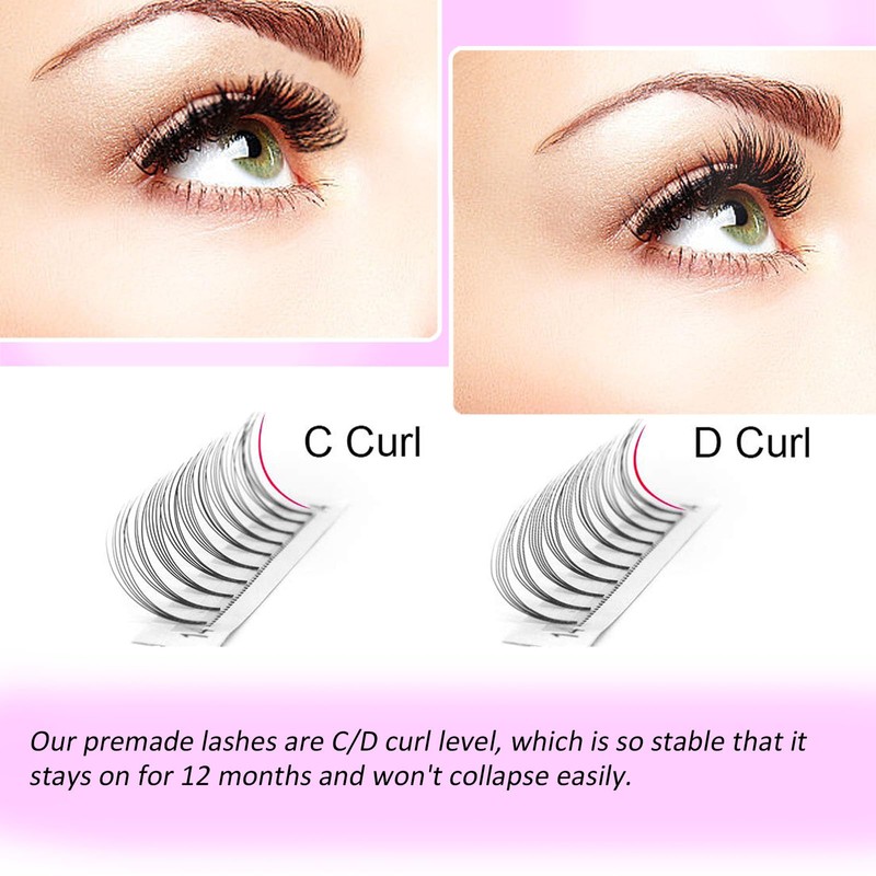 - LONG LASTING: Our permade lashes are C/D curl level, which is so stable that it stays on for 12 months and won't collapse easily. If you are not completely satisfied with our eyelash extensions, please do not hesitate to contact us and we will give you an unconditional refund.