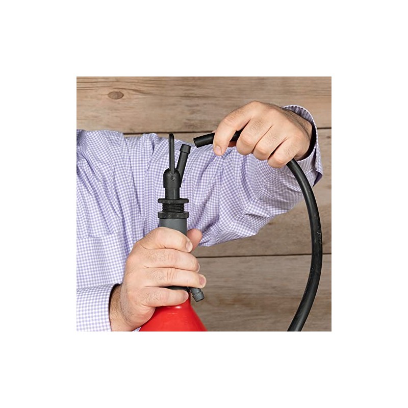 - Refills from a low-pressure water source (elevated tank or bucket)