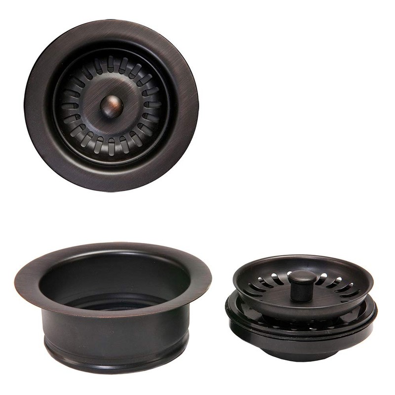 PACKAGE INCLUDES: 3.5-inch Deluxe Garbage Disposal Drain w/ Basket - Oil Rubbed Bronze (Model Number: D-130ORB). 3.5-inch Kitchen Strainer Drain - Oil Rubbed Bronze (Model Number: D-132ORB) DRAIN (D-130ORB) PRODUCT DETAILS: Configuration: Disposal Flange. Design: Deluxe Style W/ Basket Strainer. Color: OIL RUBBED BRONZE. Inner Dimension: 3.5-inch. Outer Dimension: 4.25-inch. Installation Type: INSINKERATOR BRAND COMPATIBLE. Material: BRASS. Drain Size: 3.5". Packaging: Recycled Cardboard Box. UPC Code: 813584010736. DRAIN (D-132ORB) PRODUCT DETAILS: Configuration: Basket Strainer. Design: Deluxe Style W/ Strainer Basket. Color: OIL RUBBED BRONZE. Inner Dimension: 3.5-inch. Outer Dimension: 4.25-inch. Installation Type: Compression. Material: BRASS/PVC. Drain Size: 3.5-inch. Notes: THIS MODEL DOES NOT CONNECT TO A GARBAGE DISPOSAL. Packaging: Recycled Cardboard Box. UPC Code: 813584010743. SUGGESTED ACCESSORIES: Copper Sink Installation Silicone - Model: C900-ORB