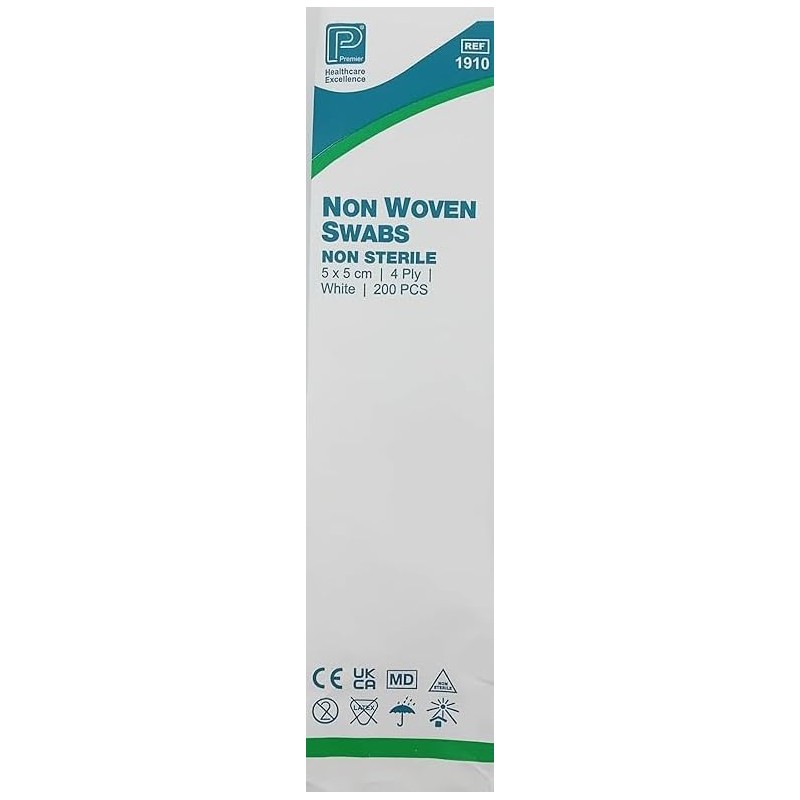 - Premier Non Woven Swabs are soft and strong with very little fibre release. The close knit weave material provides a smooth swab surface with very little friction and snagging on wound debris or sutures.