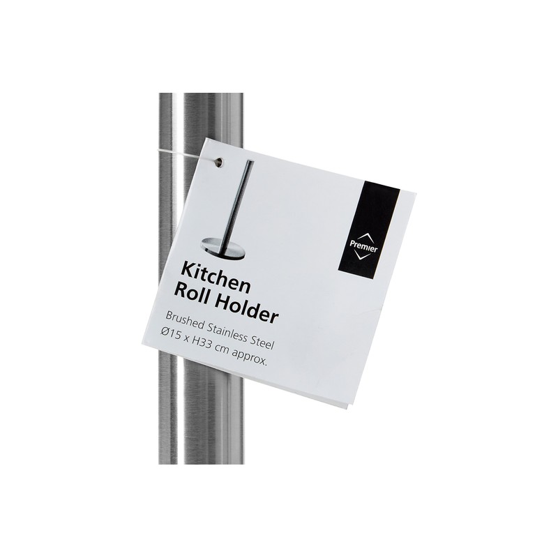 Premier Housewares 511187 Brushed Sleek Kitchen Roll Holder Free Standing Vertical Paper Towel Stand Stainless Steel With Base 33 x 15 x 15 , Silver
