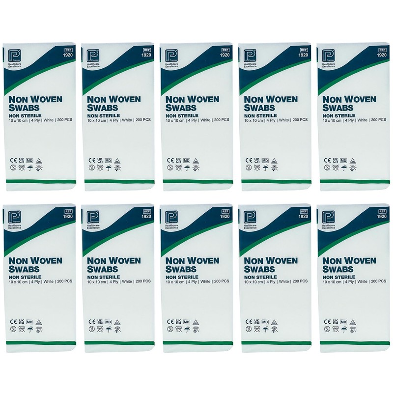 Premier Non-Sterile Non-Woven Swabs, 4 Ply, 10 cm x 10 cm, White Paper Packs, Soft, Virtually Lint-Free, Peel Open Pouch, Latex-Free (10)