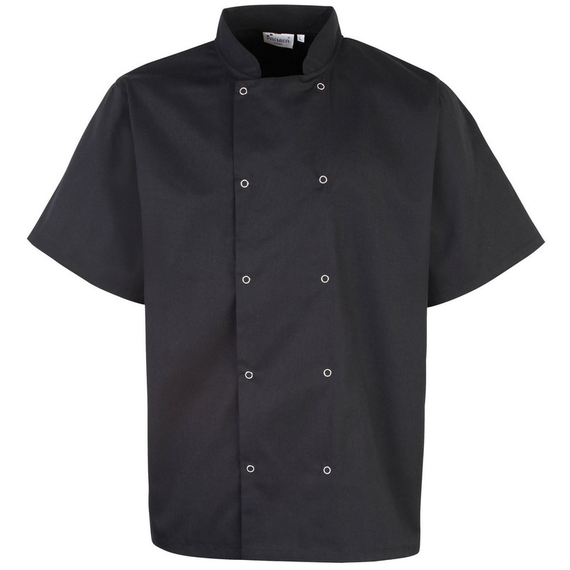 Premier Unisex Studded Front Short Sleeve Chefs Jacket (L) (Black)