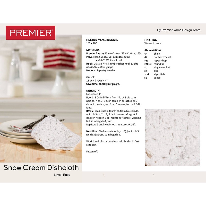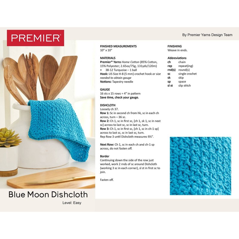 - DESCRIPTION: Premier Yarns Home Cotton Worsted is a medium weight cotton blended with polyester means colors stay brighter longer, finished projects dry faster and projects are more durable to last longer; Perfect for mesh wash cloths and more
