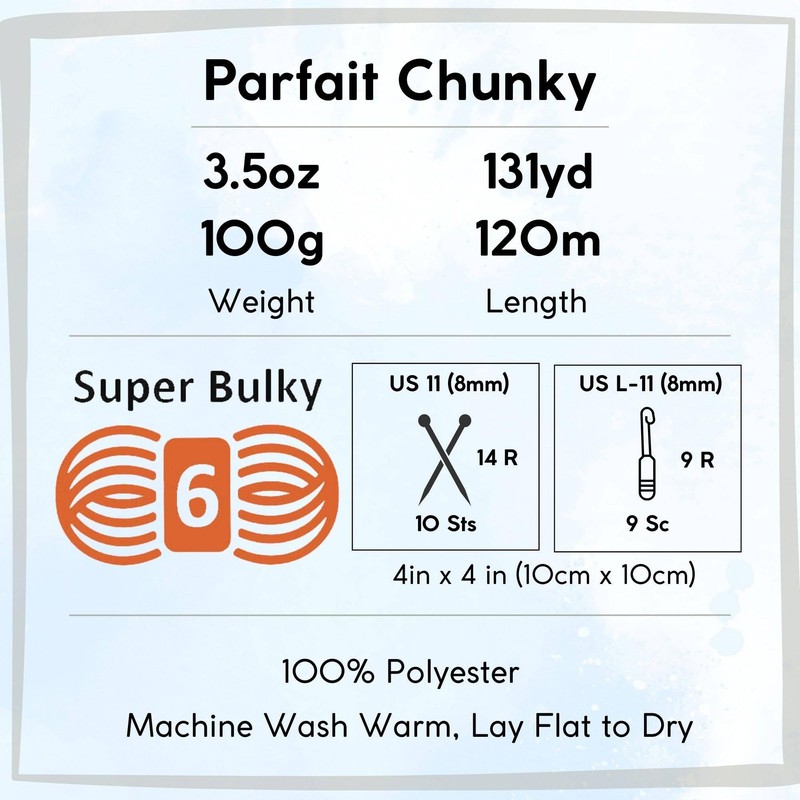- Each Number #6 Weight S Bulky skein is 3 ounces (100 grams) 131 yards (120m) in length