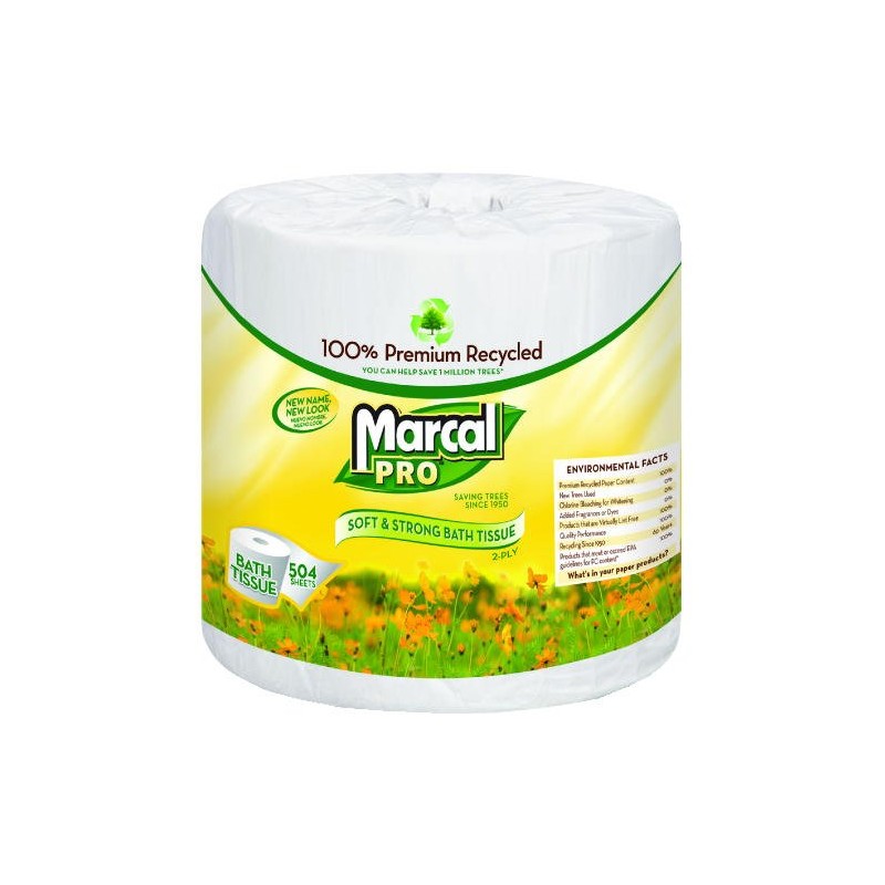 Premium 100% Recycled Bath Tissue, 2-Ply,White, 4.3 x 3.66, 504/Roll