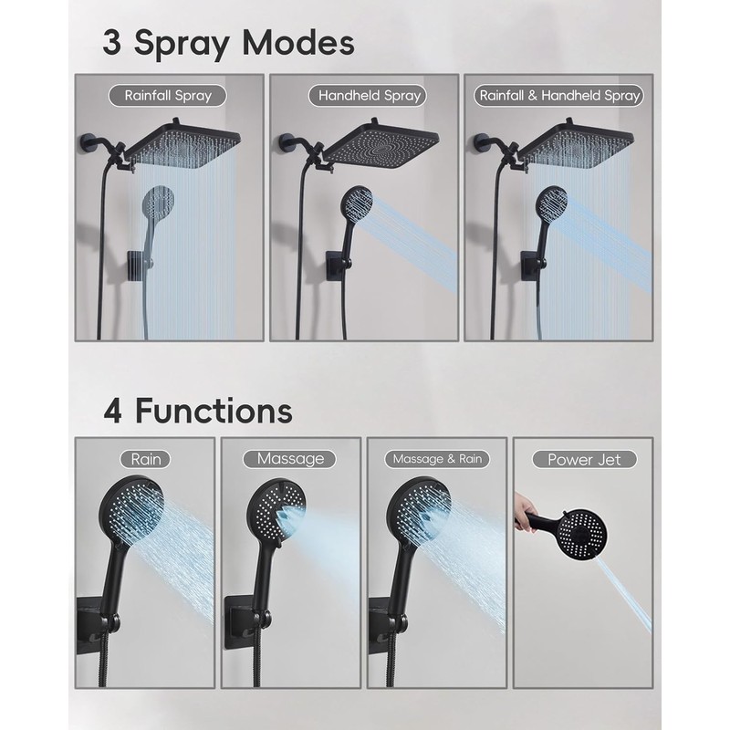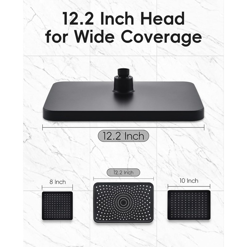 Oversized 12.2” Rain Shower Head: Provides full-body coverage with a luxurious rainfall experience.